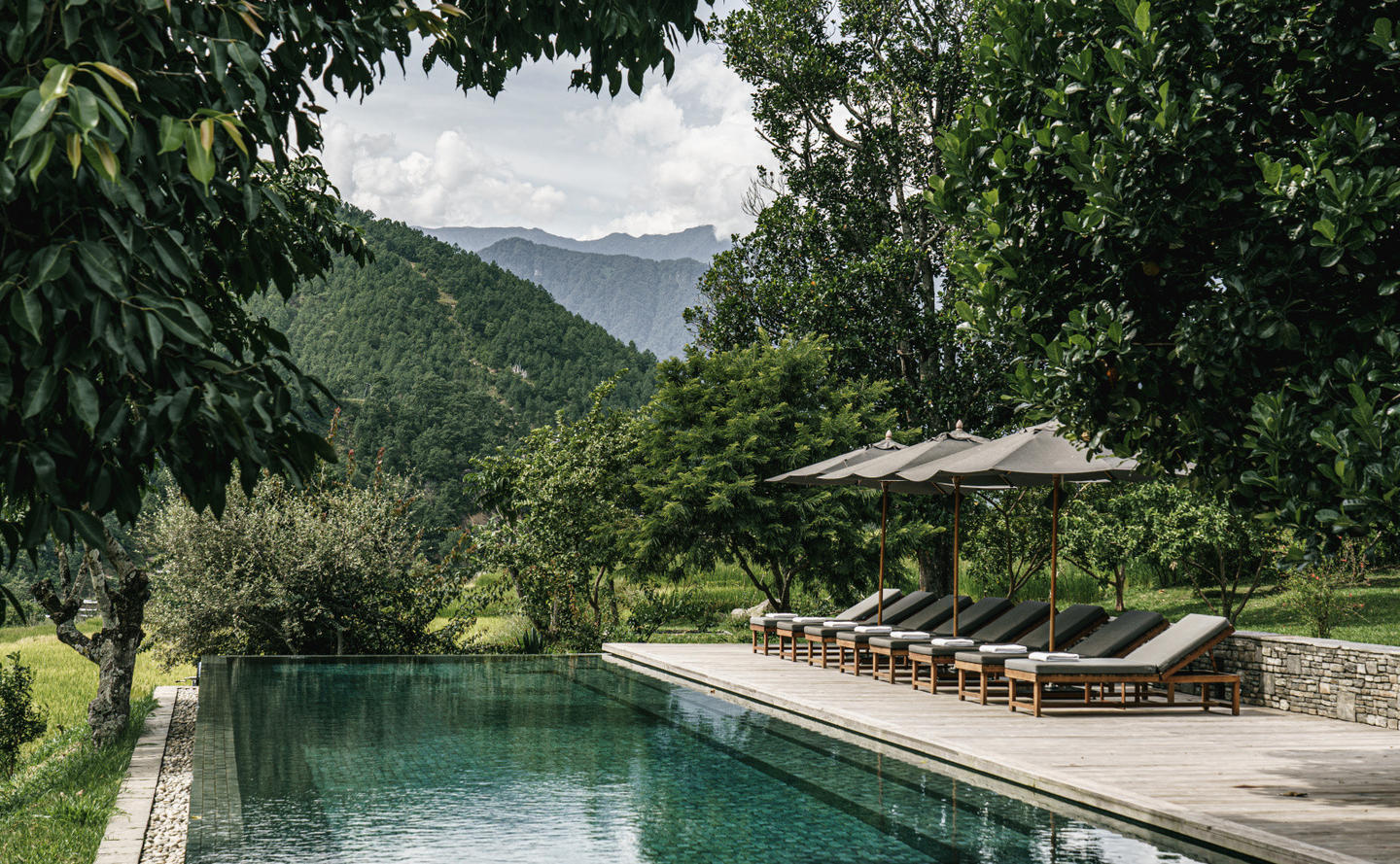 Die Suiten sind im Design identisch mit denen von Amankora Paro und bieten einen Blick über den Orangengarten und die Reisterrassen.