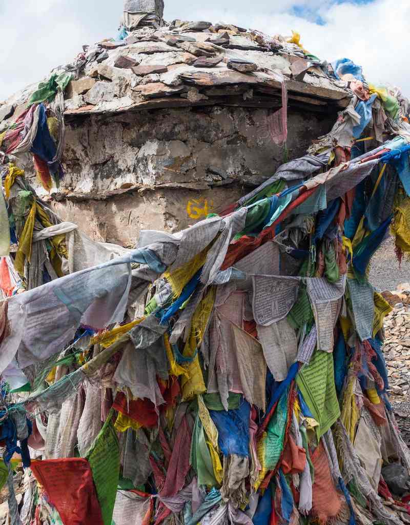 Die Landschaft geht über in alpinen Hochwald aus Tannen, Kiefern und Wacholder. Auf der Spitze eines Hügels, geschmückt mit bunten Gebetsfahnen grüßt eine kleine Felszitadelle. Die Yakhirten der Region glauben, das die Wächtergottheit „Draktsen“ hier ihren Wohnsitz hat und ohne eine Opfergabe ist es nicht ratsam weiterzuziehen.