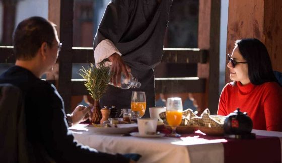 Das Hauptgebäude und alle Innenräume sind mit Wandmalereien und Schnitzarbeiten lokaler Künstler verziert. Sie vermitteln Wärme, Gemütlichkeit und spiegeln das reiche kulturelle Erbe Bhutans wider.