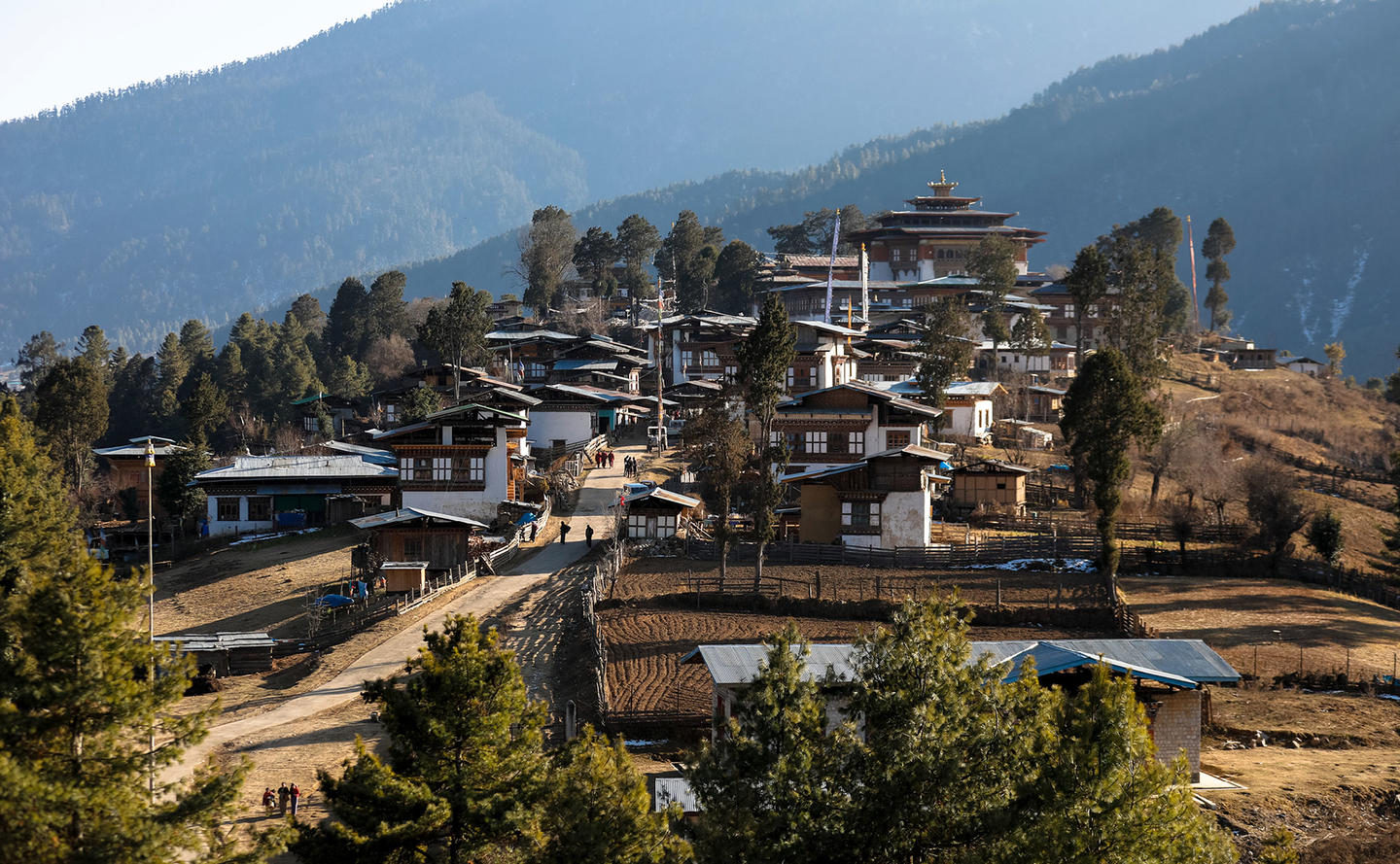 In der Stille und Abgeschiedenheit von Phobjkha liegt, umgeben von weiten Wiesen und sanft anmutenden Hügeln die wunderbare Gangtey Lodge. Das fast meditativ anmutende Tal wird von manchem Besucher als das schönste des Landes bezeichnet und ist das ultimative Gegenmittel zu unserem überreizten Alltag. Ca. 4.700 Bewohner leben in verstreuten Weilern und im Örtchen Gangtey, über dem die Gangtey Goenpa (Kloster) thront.